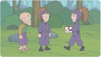 닌자는 어떤 것이라도 무기로 만들어야 한다고 말하는 안도선생님. 어느 성의 훌륭한 사람으로부터 자신의 말장난이나 아재개그는 상대를 쓰러뜨리는 좋은 무기가 된다고 칭찬받아 스카우트 된 이야기를 한다. 그 말을 들은 1학년 이반의 착한 아이들은...