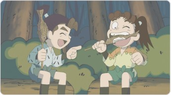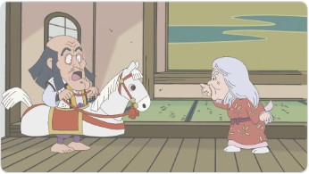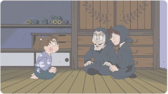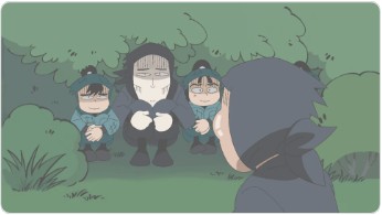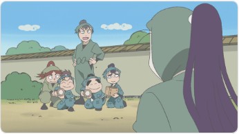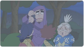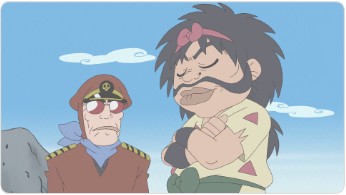 | 고래잡이 중에 바다요괴 같은 것은 봐버려서 기운이 없는 효고수군의 미요시마루씨. 그 이야기를 듣고 있던 야마다 선생님과 도이 선생님은 효고 수군의 영해를 노리고 있는 야케아토츠무타케 닌자의 소행이 아닐까 생각했다. |