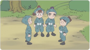 | 야마다 선생님에게 심부름을 부탁받아 리키치씨 찾아오게 된 란타로, 키리마루, 신베. 리키치씨는 전장에서 바쁘게 일하고 있었다. 거기에 갑자기 나타난 코마츠다씨. 리키치의 일하는 모습을 견학하러 온 것이다. |