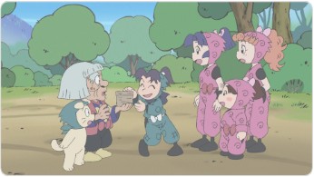 | 오리엔티어링 수업 중, 어느 저택 앞에서 서성이는 전당포 상인 토모키치씨와 만난 란타로, 키리마루, 신베. 어제 사들인 기모노에서 엉뚱한 것을 발견하고 신고하러 온 토모키치씨였지만... |